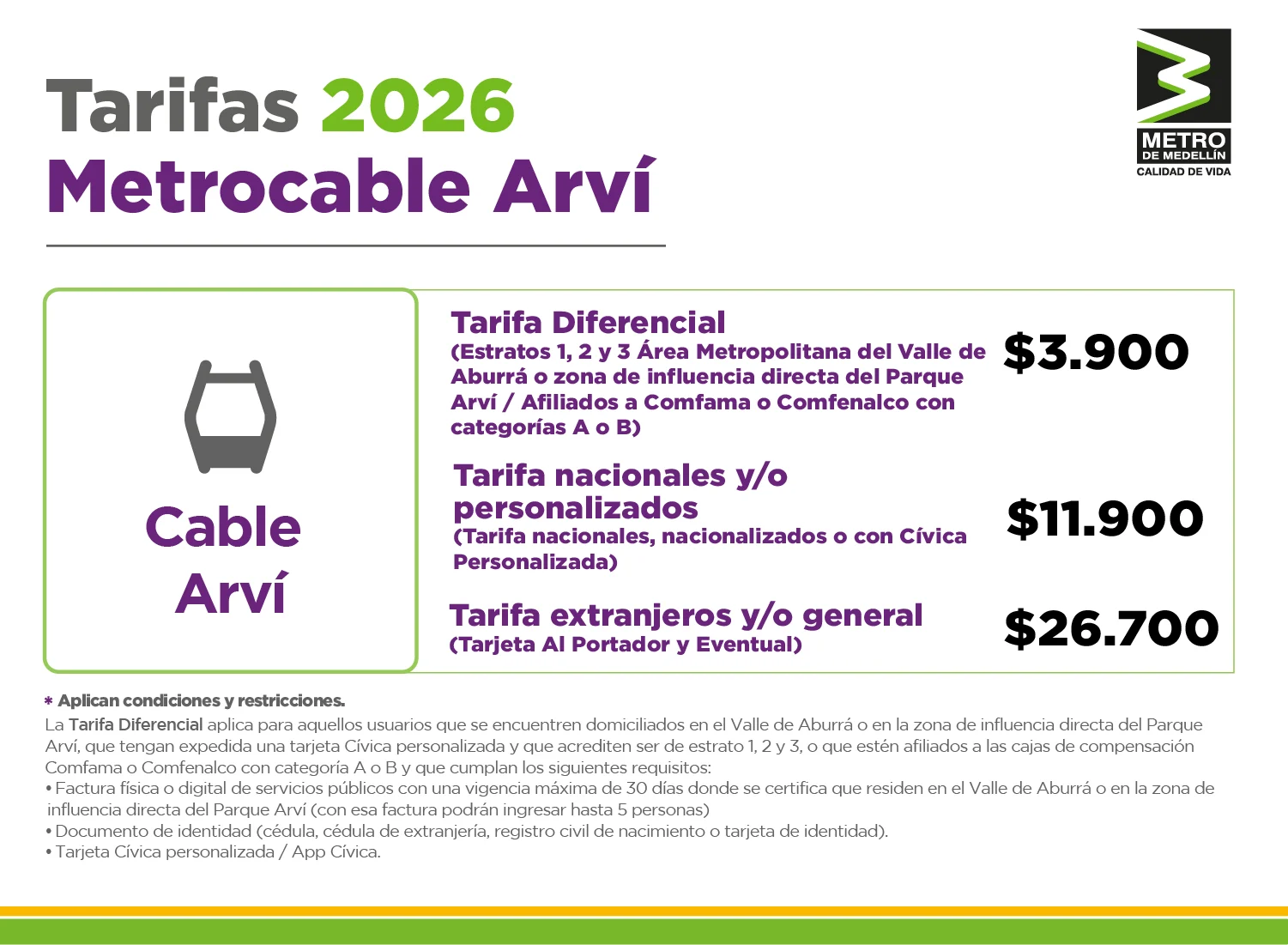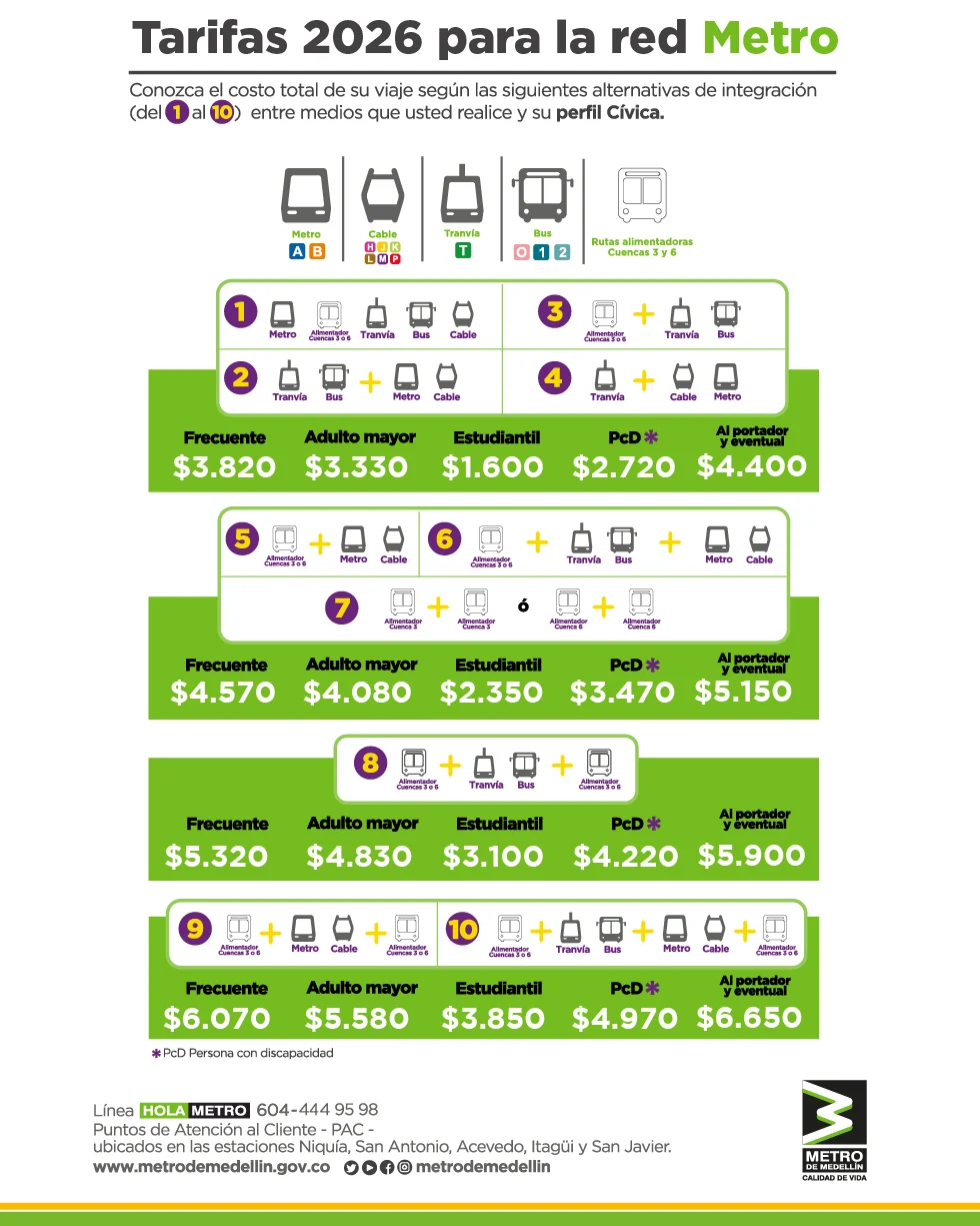 El beneficio aplica para Metro, Metrocable, Tranvía, Metroplús y rutas alimentadoras (no aplica para el transporte integrado)